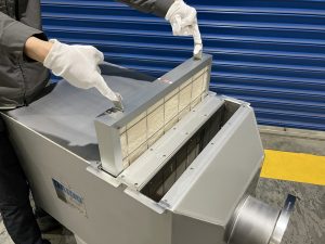 ①本体上部よりフィルターを挿入できます。(フィルター枚数は1枚でもOKです)
